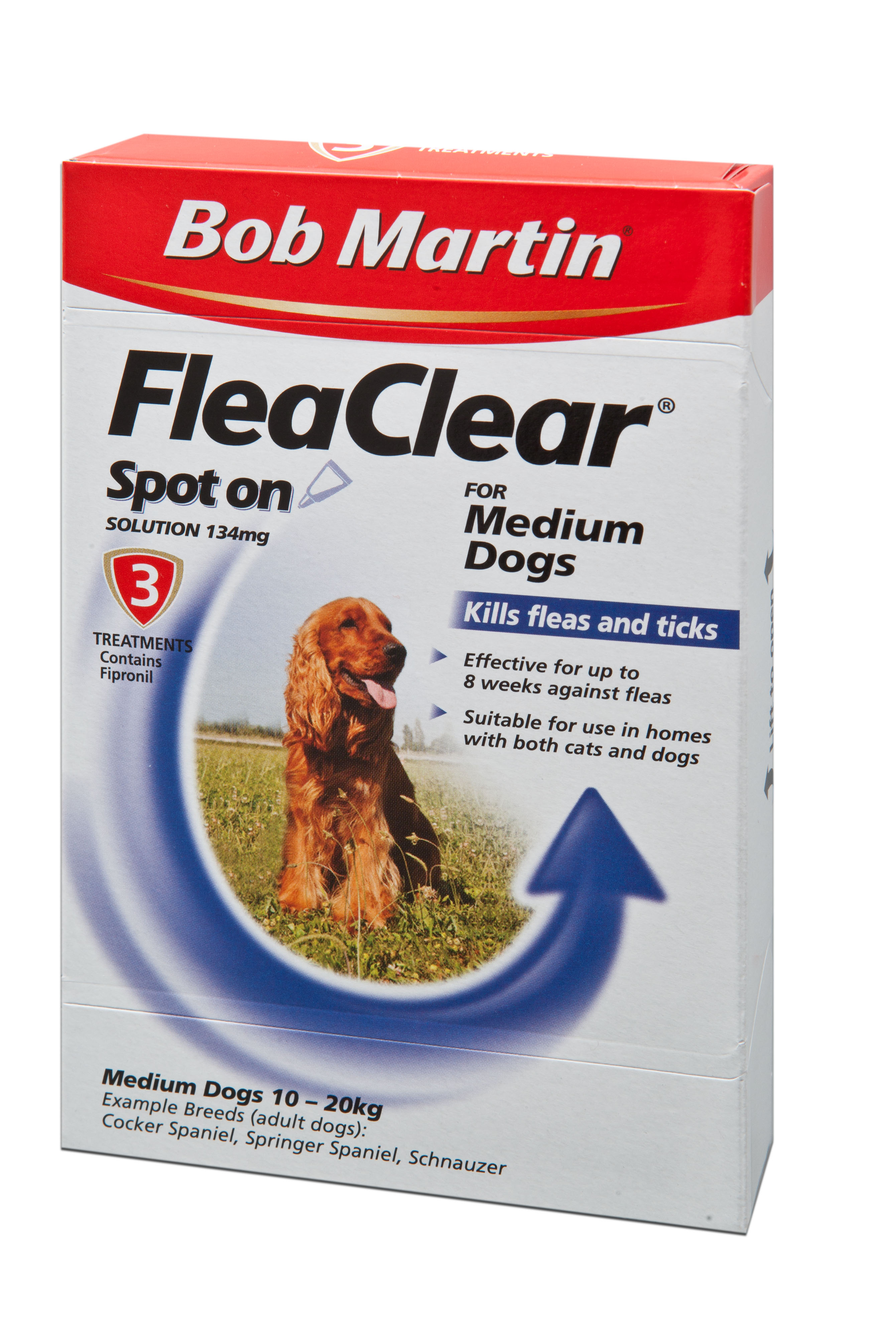 FleaClear is available for cats and four different sizes of dog, for more information please visit www.bobmartin.co.uk.